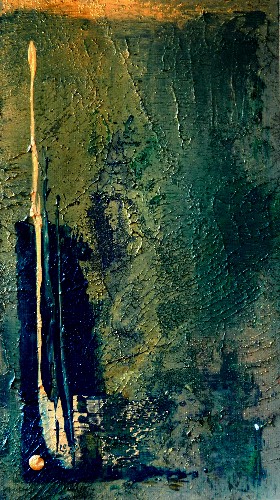with the use of a palette knife, vivid acrylics, genuine gold, silver and copper leaf, the pieces reflect a natural harmony.